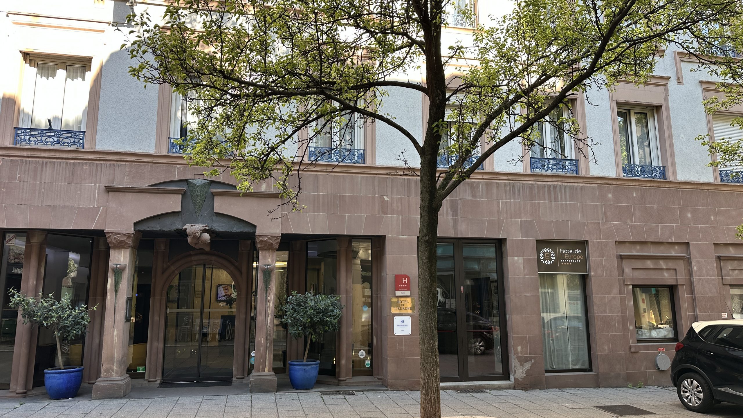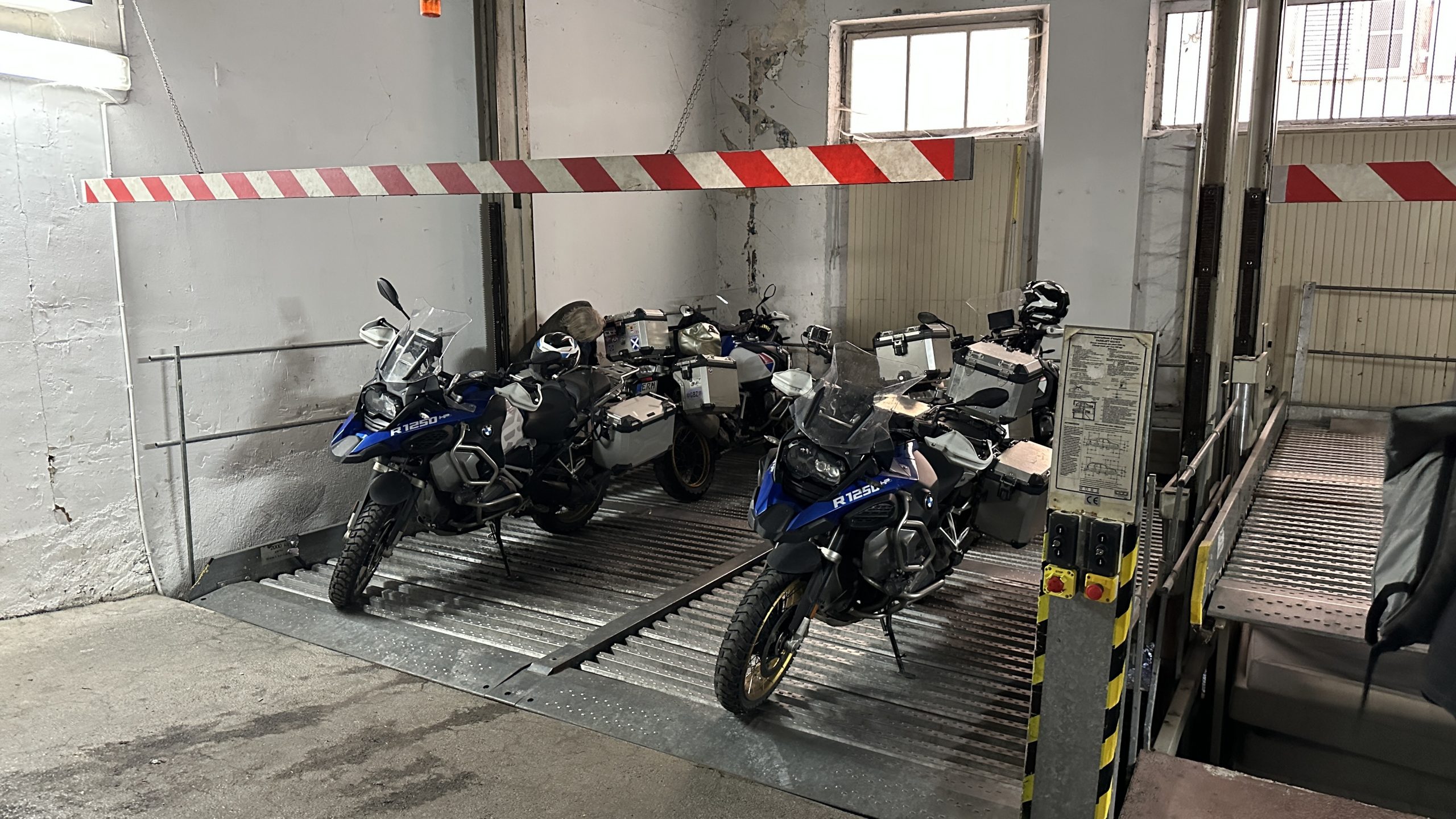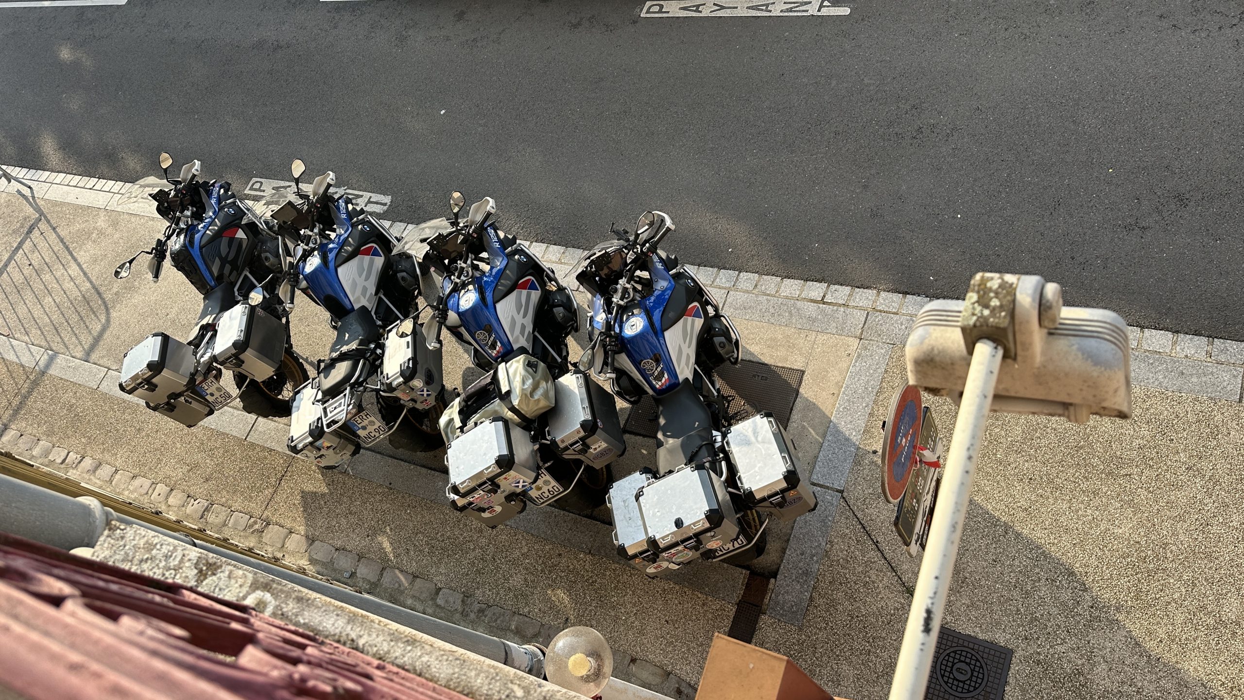 So gegen 17:30 Uhr kommen wir in Straßburg an, fahren durch die Fußgängerzone direkt vor unser Hotel, wo uns die nette Mitarbeitern die Hotelgarage öffnet, in welcher sonst nur die Autos der Chefs geparkt werden. Das hat was! Alle vier Mopeds unter Dach und Fach! Ein bemerkenswerter Service des Hotel d’Europe!