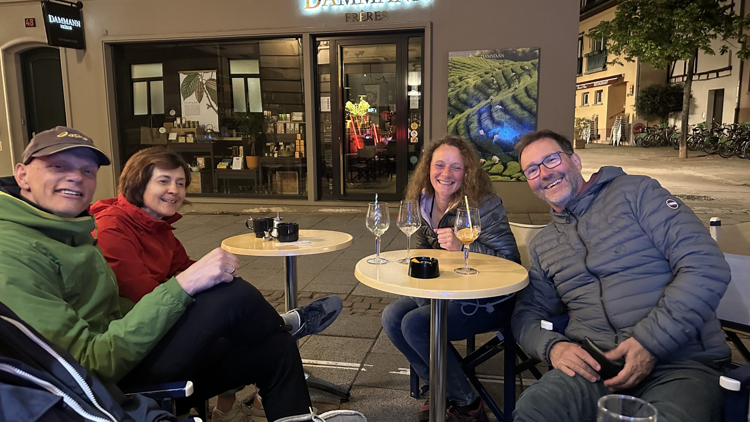 Wir spazieren noch weiter durch das Viertel und kehren noch auf einen Digestif in der Golden Gate Bar ein. Dort lernen wir noch zwei Paare kennen, die zusammen ebenfalls schon viele ausgedehnte Touren auf zwei Rädern unternommen haben, allerdings etwas schwächer motorisiert, nämlich auf dem Fahrrad. Wir sitzen im Außenbereich des Lokals, verstehen uns gut und lachen viel. Warum erwähne ich den Außenbereich? Na klar, es regnet nicht und zum Skifahren wäre es auch zu warm.