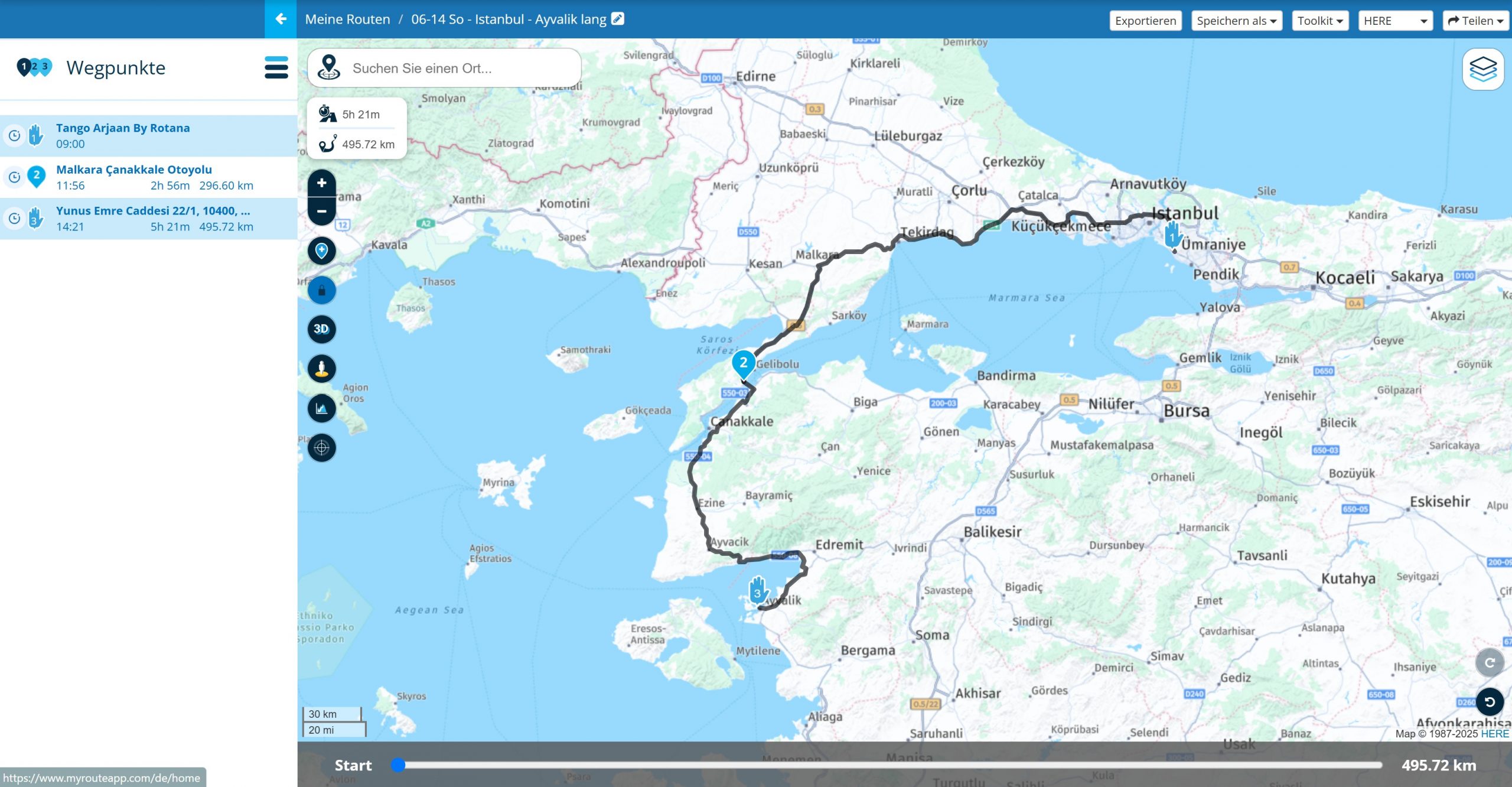 Auf der nördlichen Seite des Marmarameeres fahren wir dann bis zur Canakkale-1915-Brücke und von dort weiter südlich bis nach Ayvalik. Von dem dortigen Hafen aus geht es mit der Fähre nach Mytilini, der größeren Hafenstadt auf Lesbos. Hier haben wir genügend Tageszeit, um einmal entspannt über die Insel zu cruisen und unter anderem auch den Ort Plomari zu besuchen, der insbesondere den Ouzo-Trinkern wohl bekannt sein dürfte.
