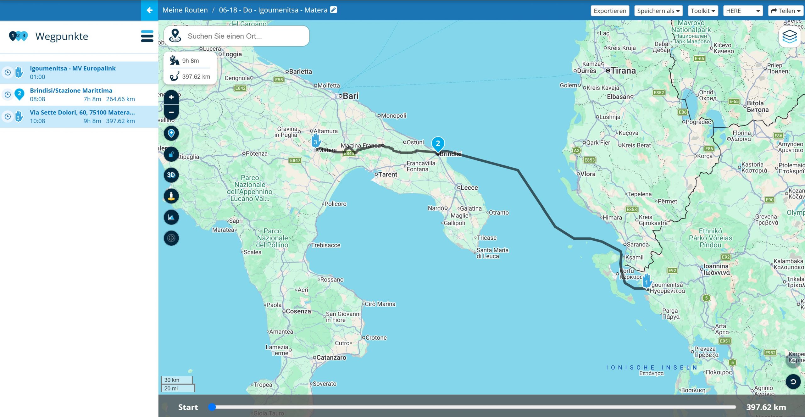 - Tag: von Igoumenitsa mit Grimaldi Lines nach Brindisi, weiter nach Matera